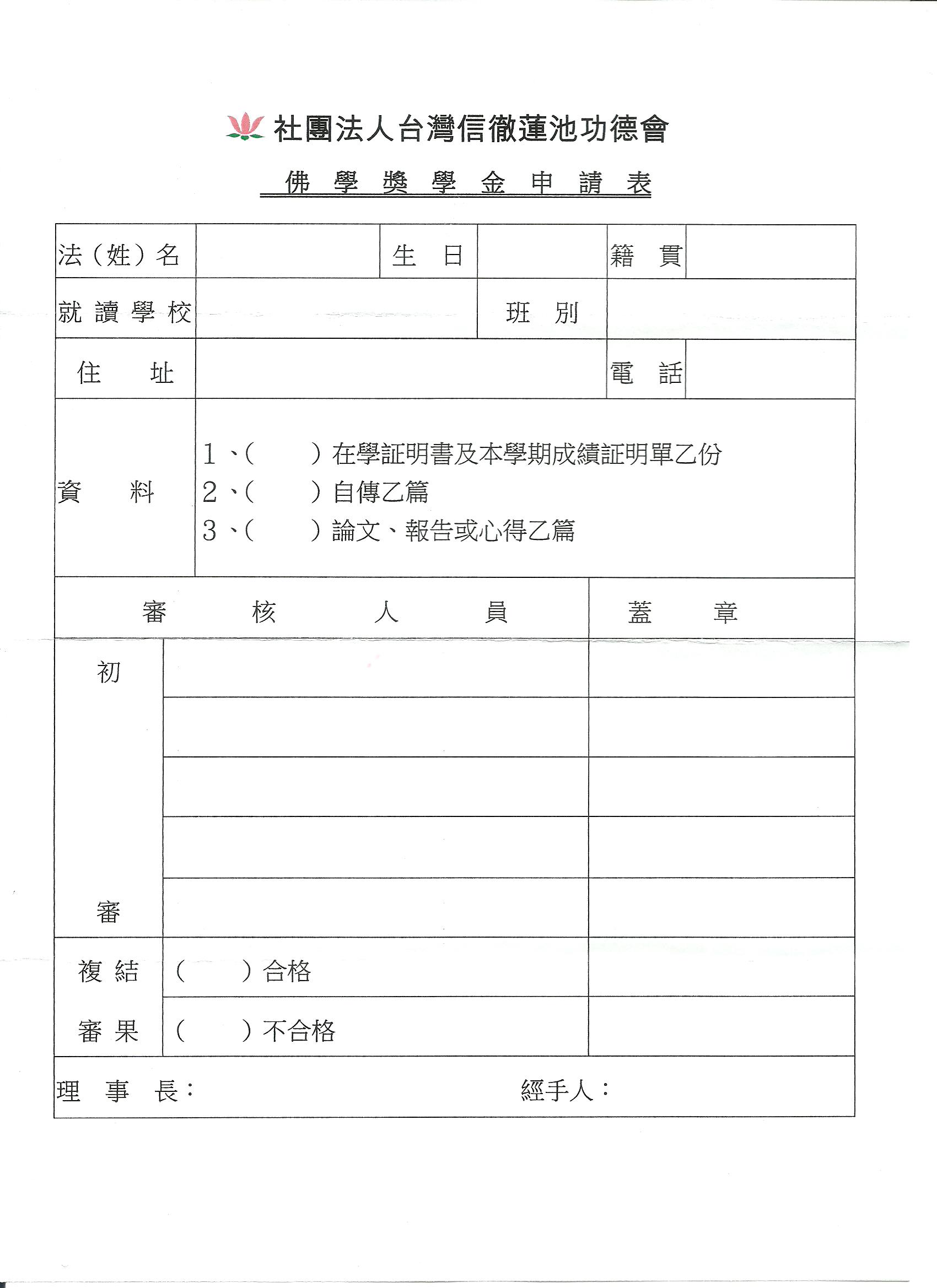 - 社團法人台灣信徹蓮池功德會獎學金申請表