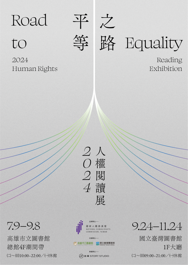 監察院國家人權委員會策辦之「平等之路-2024人權閱讀展」展覽,於113年7月9日至9月8日在高雄市立圖書館(高雄市前鎮區新光路61號),9月24日至11月24日在國立臺灣圖書館(新北市中和區中安街85號)展出,全場免費參觀。